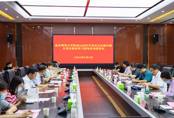 8月5日上午,生命科学学院党委书记李琴、院长李峰,化学与材料科学学院党委书记杨振兴、执行院长曹静一行来到相山经济开发区,开展访企拓岗暨就业实习基地共建活动。