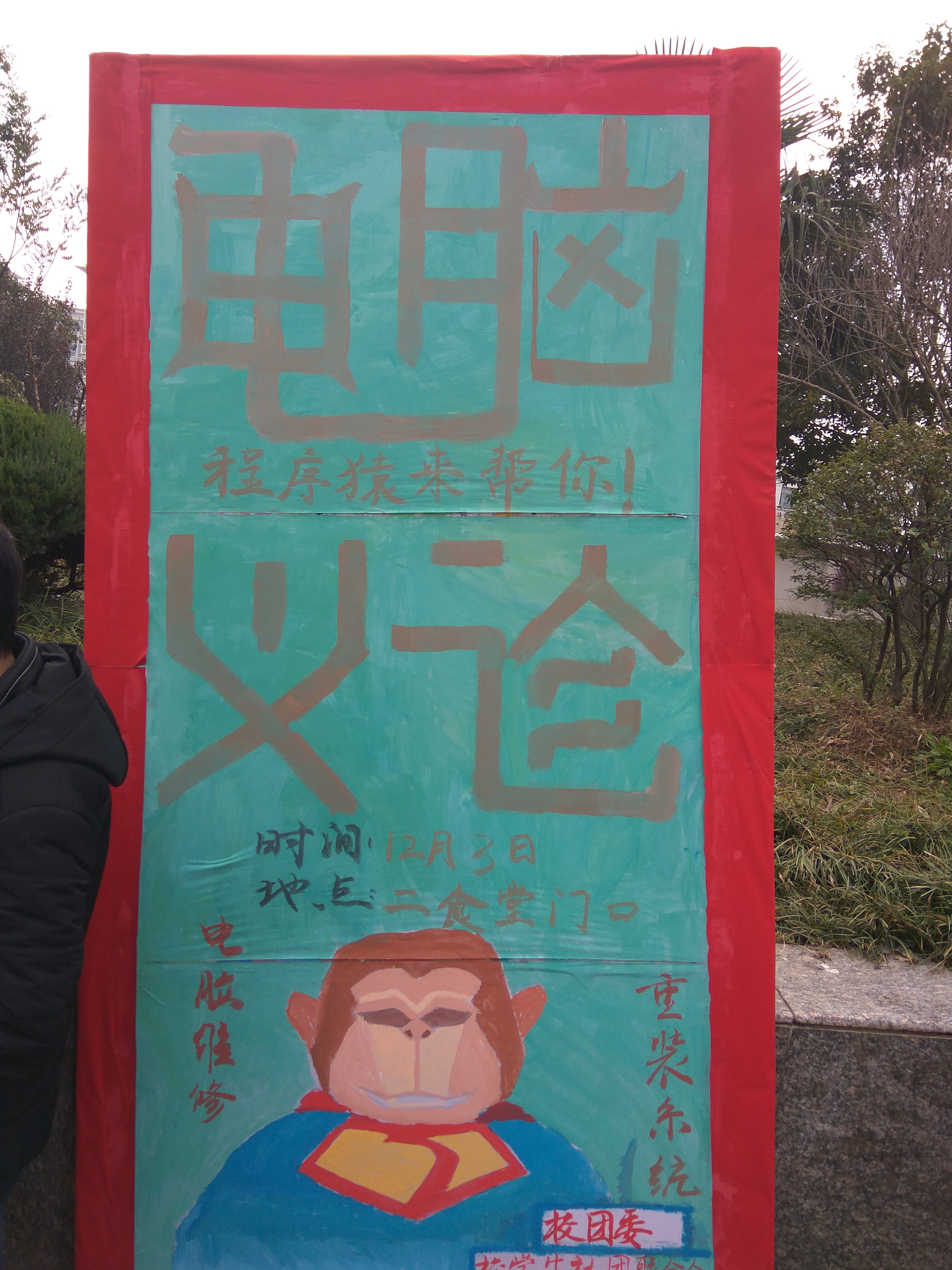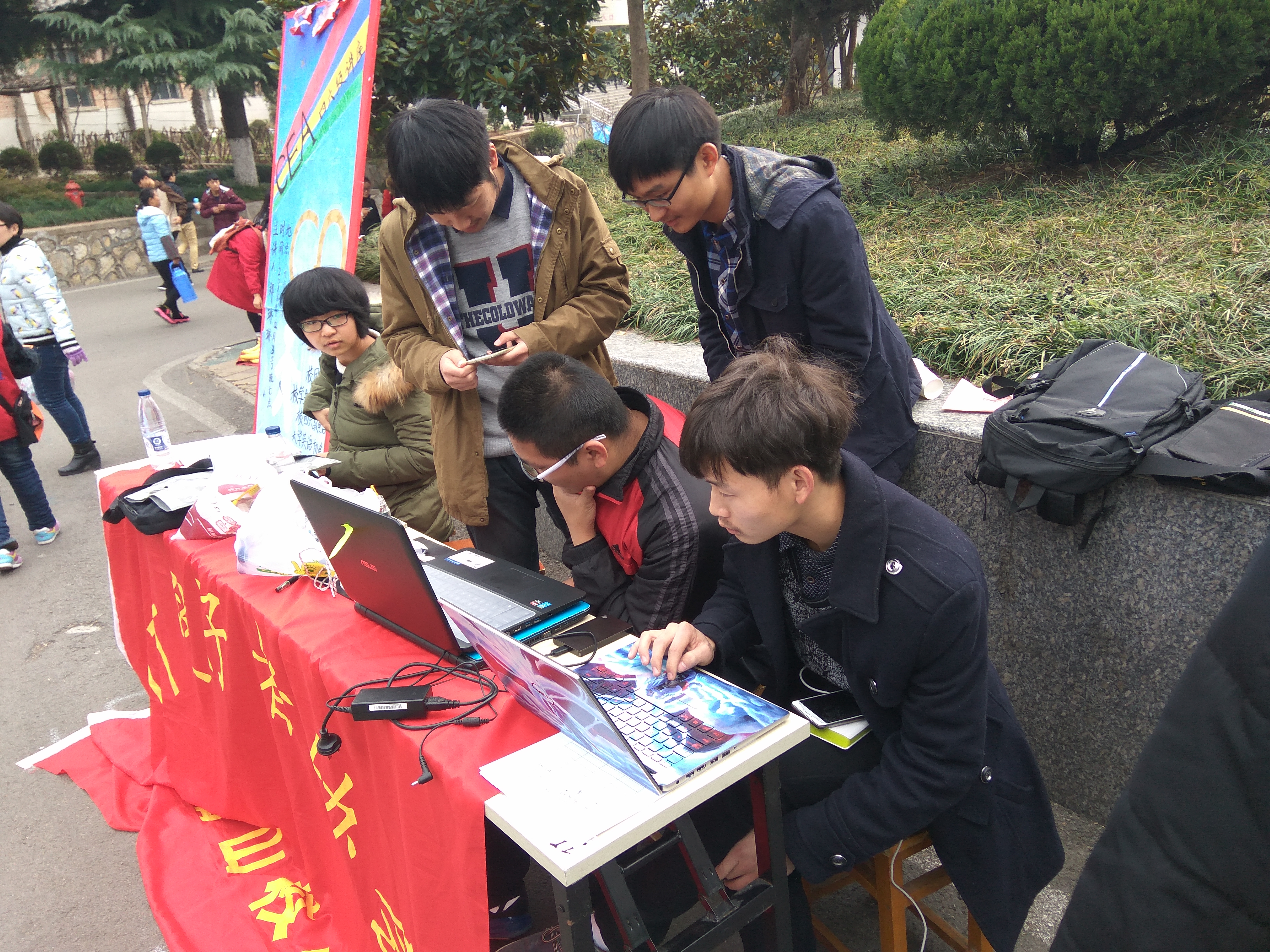 2016年12月3日,IT爱好者协会在相山校区二食堂门口举行计算机义诊活动。主要参与人员为技能部部长,副部及全体干事。