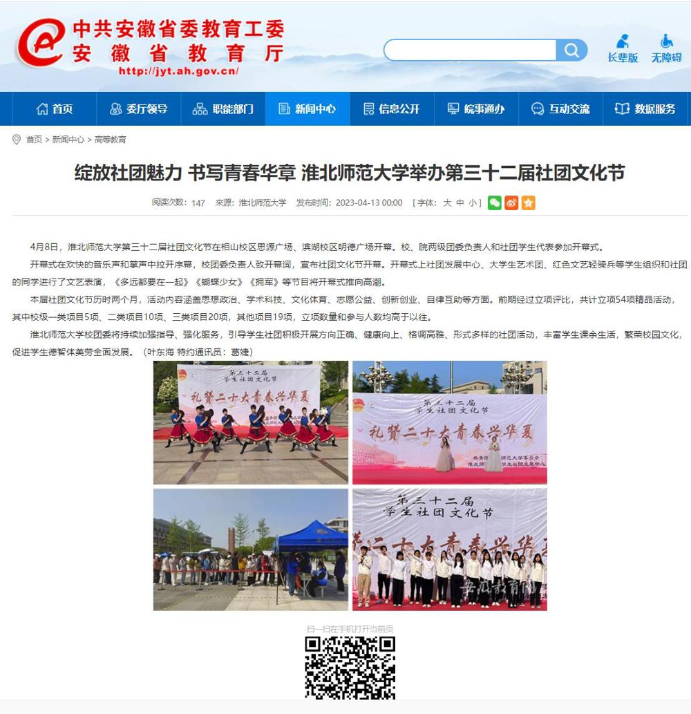 安徽教育网首页:绽放社团魅力 书写青春华章 bd官方登录页面 举办第三十二届社团文化节 来源:党委宣传部 发布时间:2023-04-15 08:15:59 浏览次数: 次 【字体:小 大】 4月8日,bd官方登录页面 第三十二届社团文化节在相山校区思源广场、滨湖校区明德广场开幕。安徽教育网首页进行了相关报道。链接地址:http://jyt.ah.gov.cn/xwzx/gdjy/40642956.html 分享到: 【打印正文】