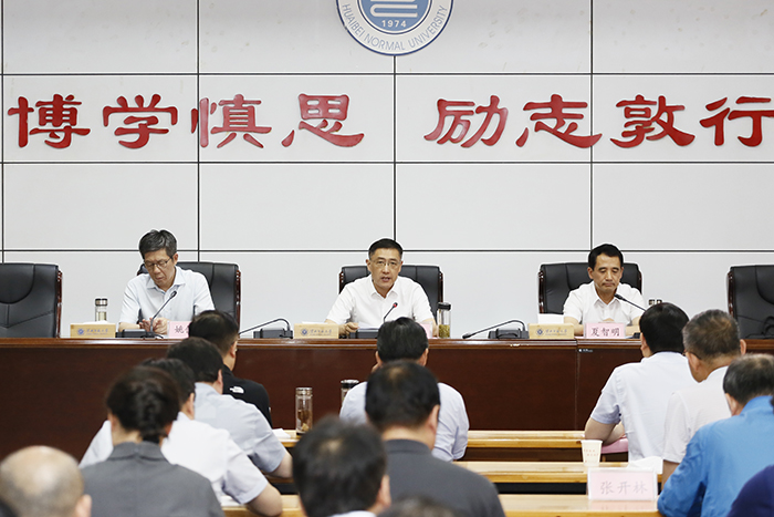 6月2日下午,学校学习贯彻习近平新时代中国特色社会主义思想主题教育读书班集中学习研讨暨结业式在相山校区行政楼第三会议室举行。省委主题教育第十巡回指导组副组长夏智明到会指导。校党委书记、主题教育领导小组组长张立驰作总结讲话。会议由校党委副书记、校长姚佐文主持,分为专题研讨和读书班结业式两个阶段。